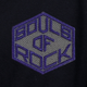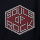 Ich bin ein dunkelgrauer Patch und Souls of Rock wurde mit silbernem Garn auf mich gestickt.