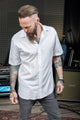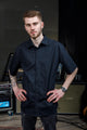 Ich bin ein casual, leicht tailliertes, schwarzes Langarmhemd aus weichem und leichtem Stoff.