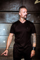 Ich bin ein klassisches, gerade geschnittenes, schwarzes T-Shirt mit Rundhalsausschnitt aus mittelschwerem, super weichem und strapazierfähigem Stoff.