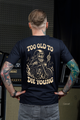 Ein düsterer Weckruf im Vintage-Tattoo-Style: Totenkopf mit Sanduhr vorn, der Sensenmann im Grossformat auf dem Rücken.