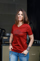 Ich bin ein klassisches, gerade geschnittenes, bordeaux T-Shirt mit V-Ausschnitt aus mittelschwerem, super weichem und strapazierfähigem Stoff.