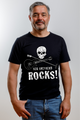 I'm a classic straight fit crew neck black t-shirt made from a mid-weight, super soft and durable fabric.