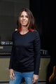 I'm a classic, straight-cut, black, V-neck, long-sleeved shirt made from a heavy yet super-soft fabric.